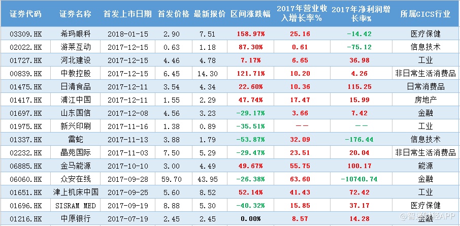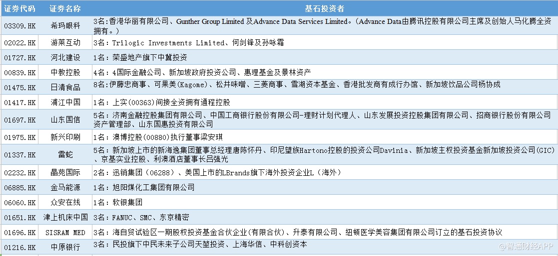 基石投资者类有6-12月的锁定期,智通财经统计了2017年7月13日-2018年1月15日之间有引入基石投资者的新上市公司一共有15家。