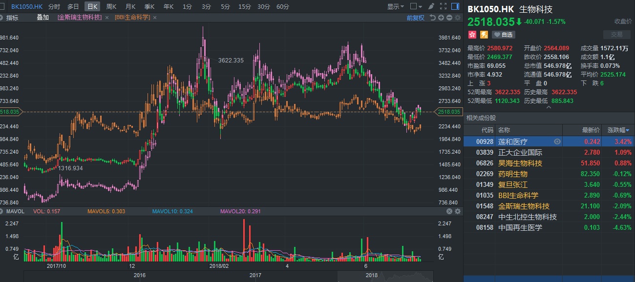 更让人意外的是,舆论之火越烧越旺,已从华大基因个体延伸到了整个泛基因行业,比如细胞免疫治疗领域等,智通财经APP拿港股生物科技板块为例,近一个月,该板块跌幅超过了23%,金斯瑞(01548)、BBI(01035)等概念股与板块走势如出一辙,处于不利……