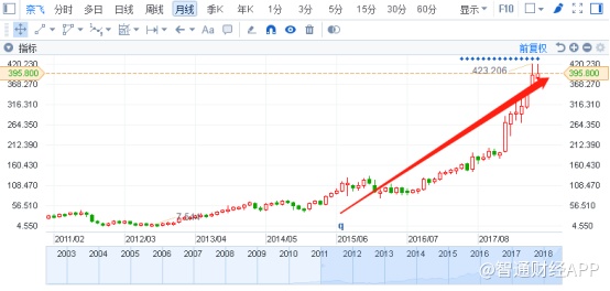2015年至今,Netflix股价从不足每股70美元,大幅增长至如今最高每股超过420美元,3年不到,这只股票上涨7倍,成为美国股市的“大白马”。
