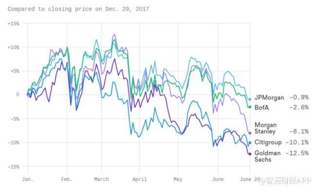 但同时美国各大银行股价大幅下跌,如摩根士丹利和高盛早前双双跌至2017年9月以来新低。摩根大通是美国规模最大的银行,股价也跌破代表长期趋势的200日线,为近两年来首见。