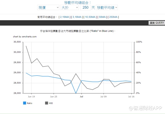 港股更惨,利用港股常用的250日移动平均线,发现港股只有23%股份是高于250日线,也就是港股有70%股份进入熊市。