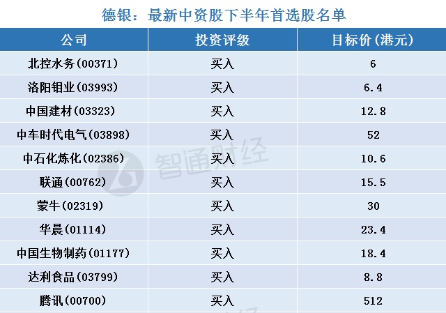 经智通财经APP整理,德银给出最新中资股下半年首选股名单如下,