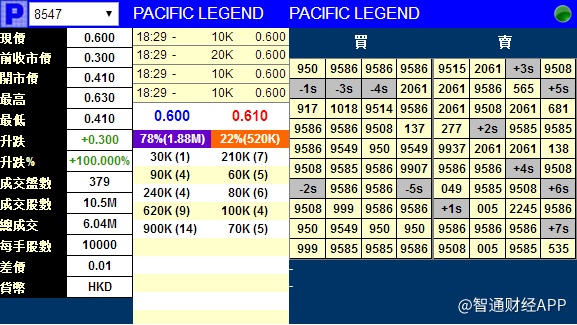 LEGEND(08547)将于下一交易日挂牌,上市前夕,据辉立交易场资料显示,PACIFIC