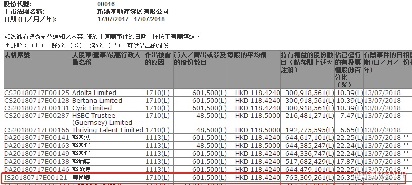 邝肖卿增持新地(00016)60万股 涉资7105万元