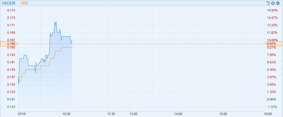 智通财经APP获悉,茂宸集团(00273)股价持续走强,连续三日涨近三成,截至10时41分,涨10.6%,报价0.167港元,成交额1112.88万。