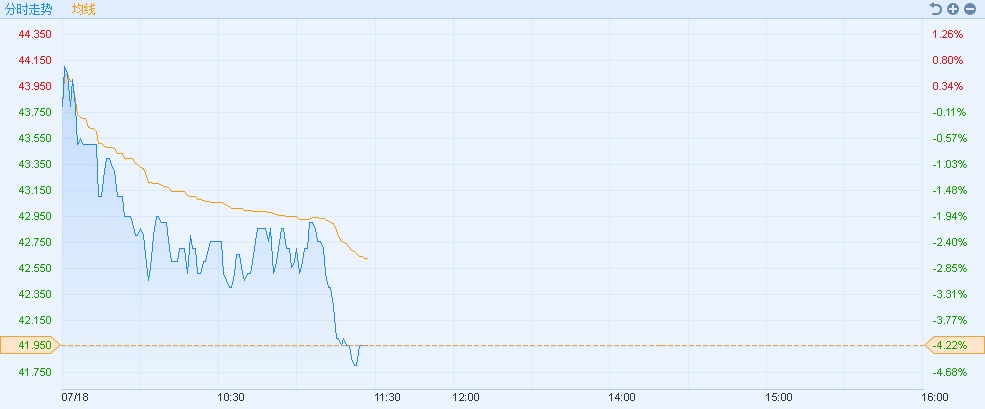 智通财经APP获悉,东阳光药(01558)逆势下跌,截至11时26分,跌4.22%,报价41.95港元,成交额5283.13万。