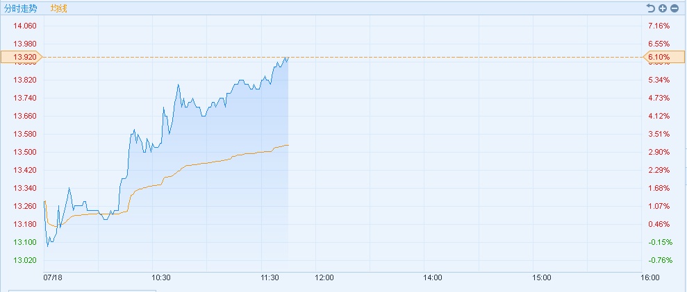 智通财经APP获悉,碧桂园服务(06098)今日再创上市新高,截至11时44分,涨5.95%,报价13.9港元,成交额2.01亿。