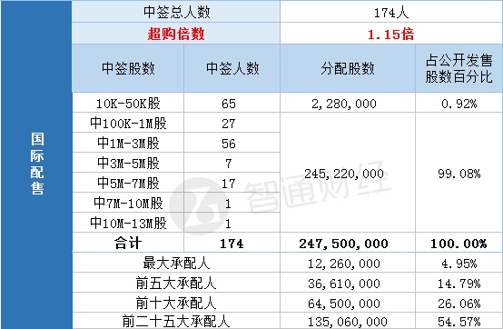 国际配售中签总人数174人,超购倍数1.15倍。