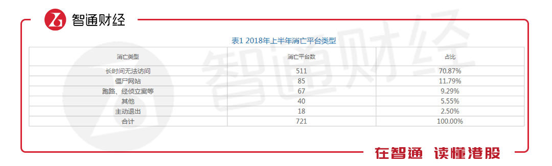 实际上,根据国家互联网技术平台监测,在2018年上半年,国内运营的P2P平台合计有2835家,而消亡的平台达721家,平均每月消亡120家,其中跑路及经侦立案的有67家,长时间无法访问的达511家,而7月份上旬出现的问题平台数量仅仅不过“平均数”而已。