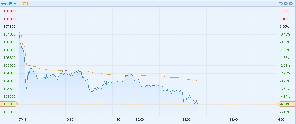 智通财经APP获悉,瑞声科技(02018)股价下滑,截至14时19分,跌4.64%,报价102.8港元,成交额7.19亿。