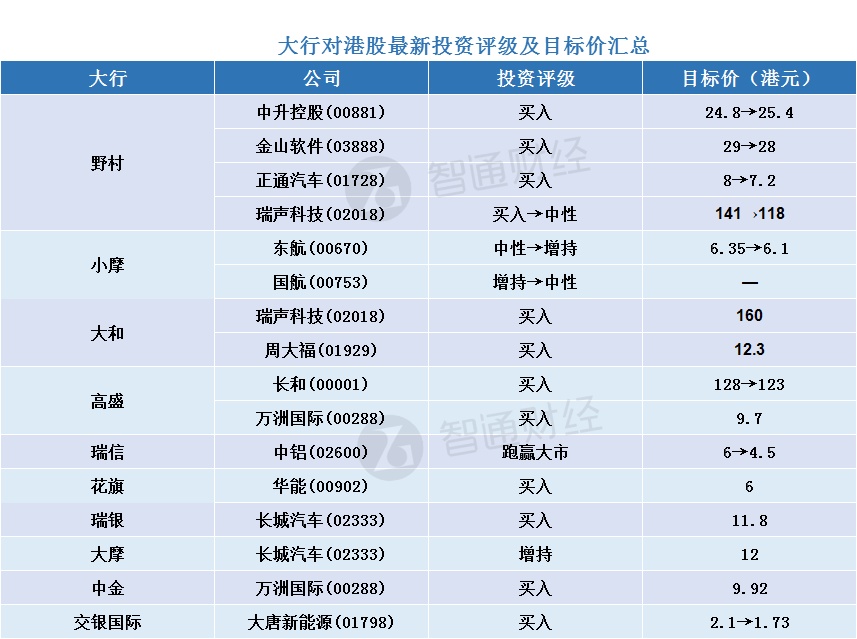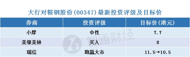 二、大行对鞍钢股份(00347)最新投资评级及目标价