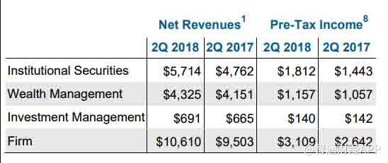 其中,投资银行收入17亿美元,去年同期14亿美元。咨询收入6180万美元,去年同期5040万美元。承销业务收入5410万美元,去年同期4050万美元。股票买卖净收益25亿美元,去年同期为22亿美元。