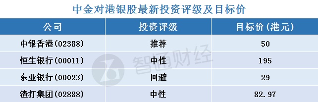 经智通财经APP整理,中金对港银股最新投资评级及目标价如下,