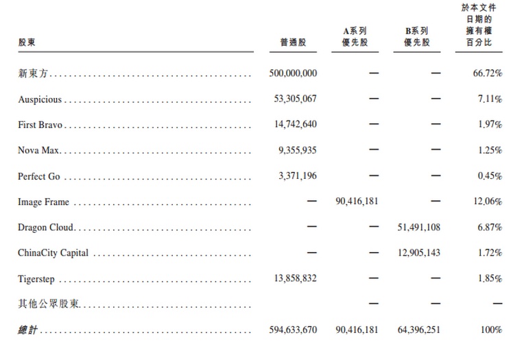 公司由新东方集团内部孵化,重组后由腾讯通过附属公司意象架构参与投资,将主要透过网站、手机应用程序及移动站点营运,而原来的新东方集团将主要于实体学习中心、教室及实体店提供课程及服务。公司股权结构如下图所示: