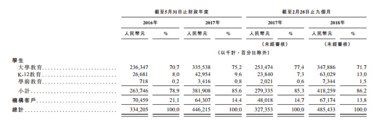 公司在学生人次及总营收方面快速增长,其中学生人数由截至2017年2月28日止九个月的70.2万人增加105.3%至截至2018年2月28日止九个月的140万人,总营收由截至2017年2月28日止九个月的3.274亿人民币增加48.3%至截至2018年2月28日止九个月的4.854亿人民币。