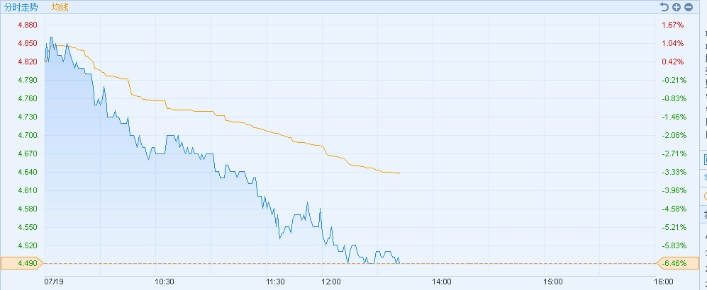 智通财经APP获悉,五矿资源(01208)股价持续走低,截至13时41分,跌6.46%,报价4.49港元,成交额1.41亿。
