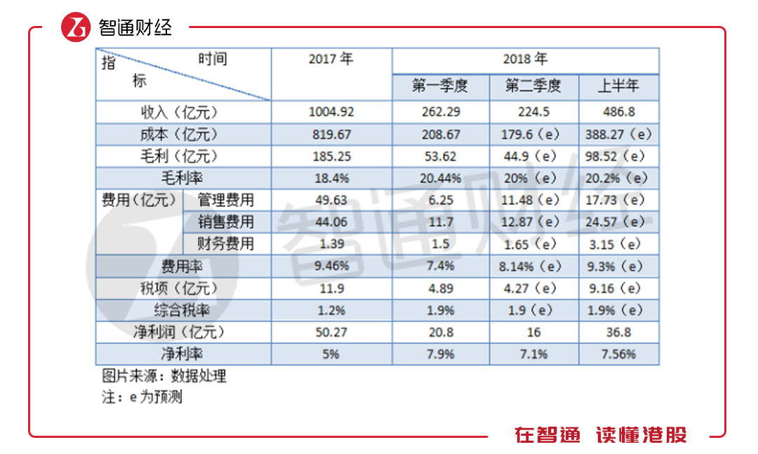 2018年上半年收入和净利润是给到的,那么第二季度的这两项数据也可以推算出来,影响净利润的要素主要有费用率,成本率以及税率。