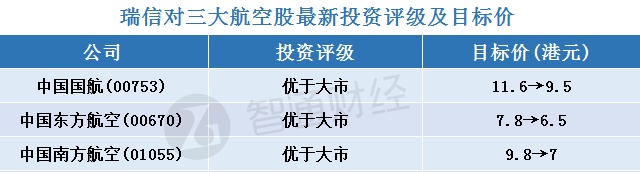 经智通财经APP整理,瑞信对三大航空股最新投资评级及目标价如下,