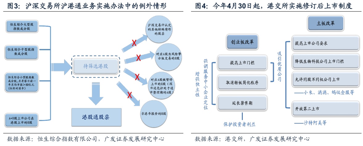 对现有港股通标的无限制。恒生综指成分与港股通标的高度重合,长期来看指数成份调整和港股通标的调整基本吻合。目前恒生综合指数并不包含外国公司和合订证券,也没有不同投票权架构公司,因此沪深交易所最新的规定不会导致现有港股通标的被剔除。