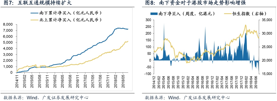我们预计,中期内不会改变互联互通的趋势,AH市场生态朝不断融合的方向发展。就南下港股通而言,成交占比将持续提升、标的范围有望进一步扩充、行业分布更加多元化等。