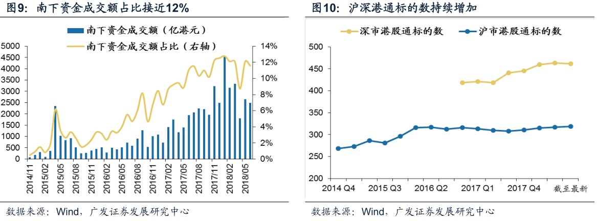 1)南下资金成交金额占港股的比重接近12%,南下资金的流入流出对恒生指数具有举足轻重的影响,未来在险资等机构配置海外资产的大趋势下只增不减;