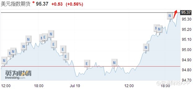 数据公布后,美元指数期货有所上涨,现报95.37,涨0.53或0.56%。