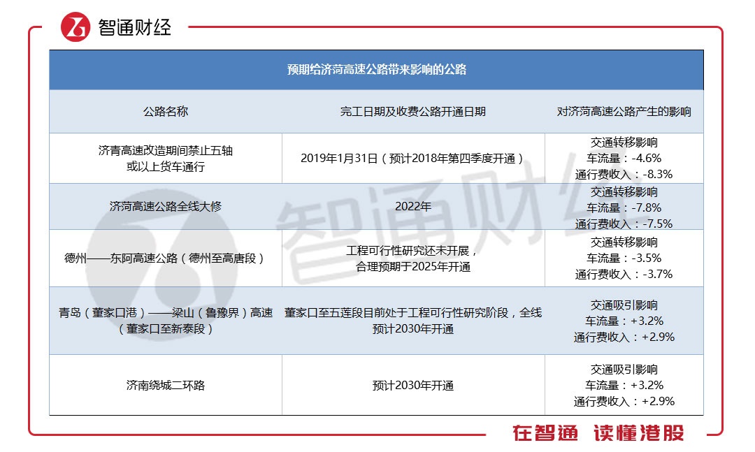 由上表可见,除了青岛(董家口港)——梁山(鲁豫界)高速(董家口至新泰段)及济南绕城二环线将带来交通吸引影响,均令其车流量带来3.2%的提升,通行费收入则为提高2.9%;但是另外三条线路均会造成转移影响,且济菏高速公路还将面临全线大修。