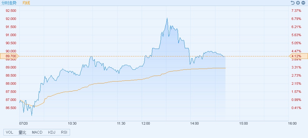 智通财经APP获悉,新奥能源(02688)股价一度创52周新高涨至92.35港元,截至14时41分,涨4.12%,报价89.7港元,成交额3.44亿。