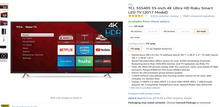 其中一款型号为TCL 555405的4K电视机获得四星半的好评,并有近3000条好评。