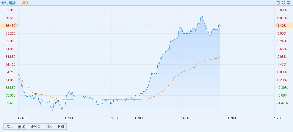 智通财经APP获悉,新华保险(01336)午后放量,股价直线拉升,截至14时48分,涨4.42%,报价35.45港元,成交额4.53亿。