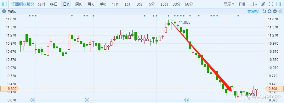 伴随着铜价的下跌,以江西铜业股份(00358)为首的铜股在6月8日-7月11日里,一路阴跌下行,跌幅接近20%左右。