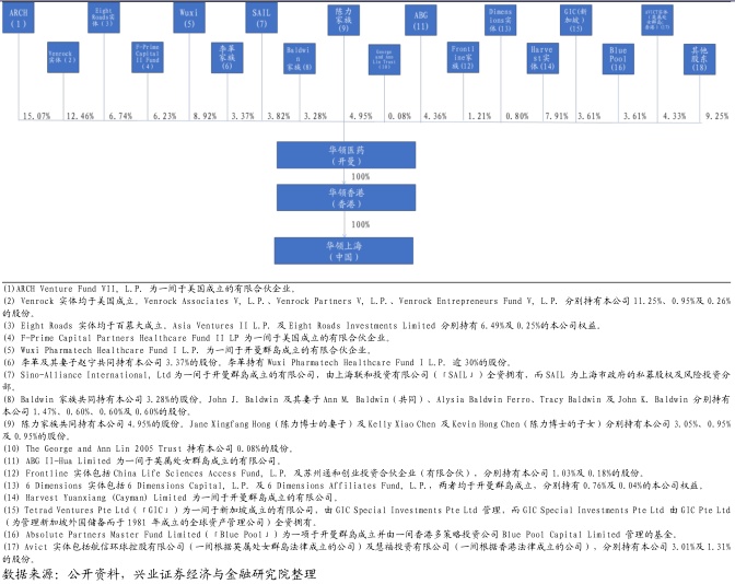 成立以来,公司获得多家全球知名创投持续看好,2018年3月27日完成1.174亿美元的D轮和E轮融资,总计获得约2亿美金投资。目前,公司股权结构分散。持股比例最高为专注投资早期生命科技公司的ARCHVenturePartners,美国著名风投基金Venrock,富达集团下属斯道资本以及F-Prime基金,分别持有15.07%,12.46%,6.74%、6.23%的股份。此外,药明康德创始人李革夫妇以及李革持30%的WuxiHealthcareVentures分别持有3.37%和8.92%。公司创始人陈力博士家族持有4.95%。