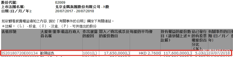 智通财经APP获悉,根据联交所资料显示,欧阳结良于本周三(18日)增持金隅集团(02009)1765万股,每股作价2.76元,总值4871万元,最新持股量增至5.03%。