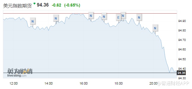 美元全线下挫,最低跌至94.36,较昨日高位跌去近100点。