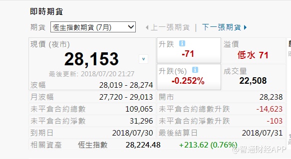 除此之外,香港恒生指数期货(7月)跌0.252%,截至发稿,报28153。新加坡A50骤升2.15%,报11499。HKADR指数升0.09%,报28251.03。
