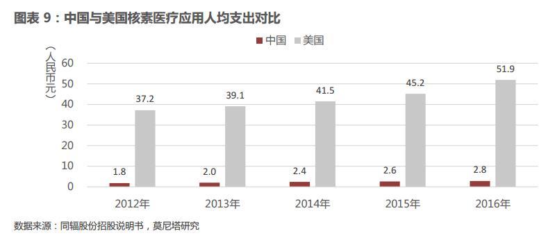 国内券商测算18F-FDG、锝[ 99mTc]标记药物均有5-10倍的成长空间。以内地核药上市公司为例,云克注射液为高临床价值的独家产品,终端增长快速,经过2017年渠道调整,2018年将重回两位数增长,具3倍以上成长空间。此外,尿素14C胶囊、碘[I-125]密封籽源等品种均有3倍以上增长空间。现有产品线足以支撑公司核药板块在5年内保持较快增长。中国同辐在港股上市,想必增长空间也是值得关注的吧。