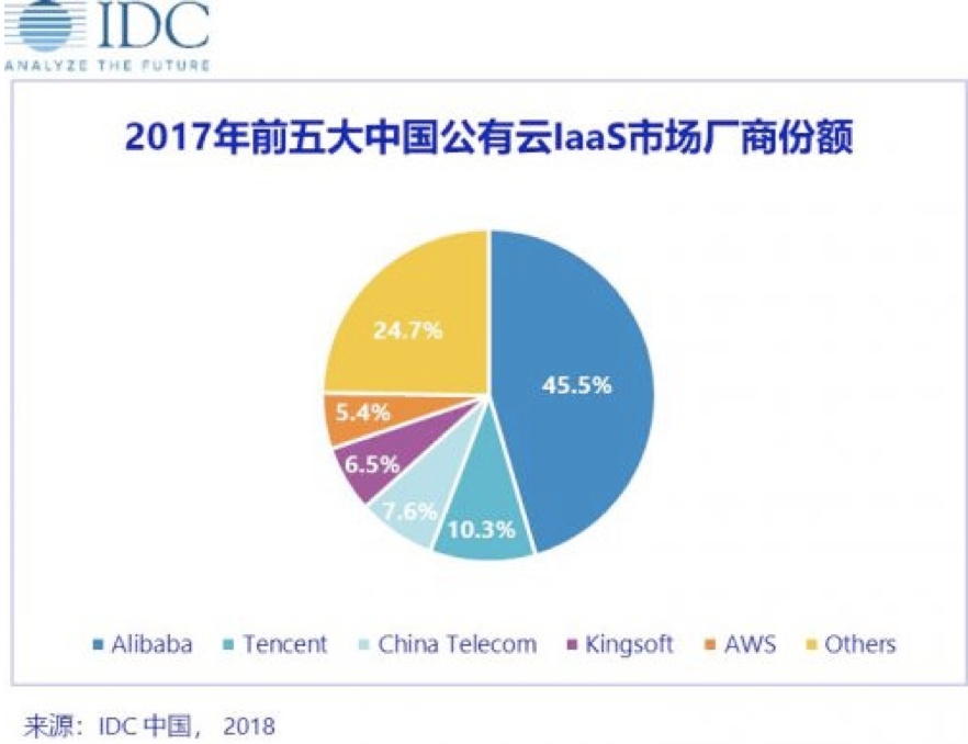 金山2012年开始做金山云,2014年雷军提出All-in,要跻身云服务前三的目标。根据IDC的统计,2017年金山云在中国位居第四位,处于阿里云、腾讯云、中国电信云之后。2017年上半年时金山云位居行业第三,行业竞争激烈,IDC预测国内今年将是公有云IaaS厂商优胜劣汰的关键年。