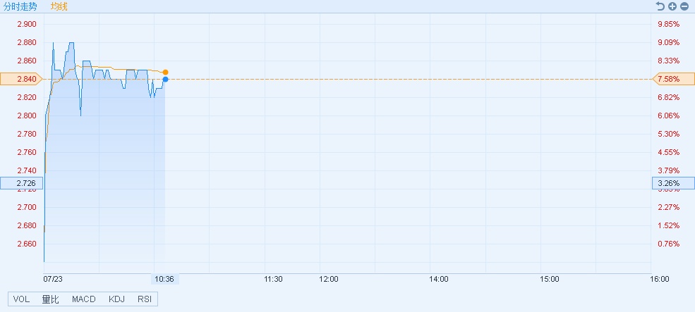 智通财经APP获悉,紫元元(08223)持续走强,股价直线拉升,截至10时34分,涨7.58%,报价2.84港元,成交额1301.02万。