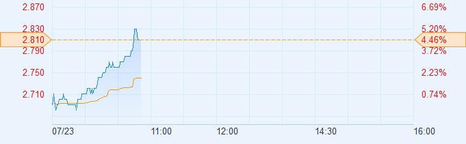 智通财经APP获悉,中海石油化学(03983)盘中快速上涨,截至10:46,涨5.2%,报2.83港元,成交额1926万港元。