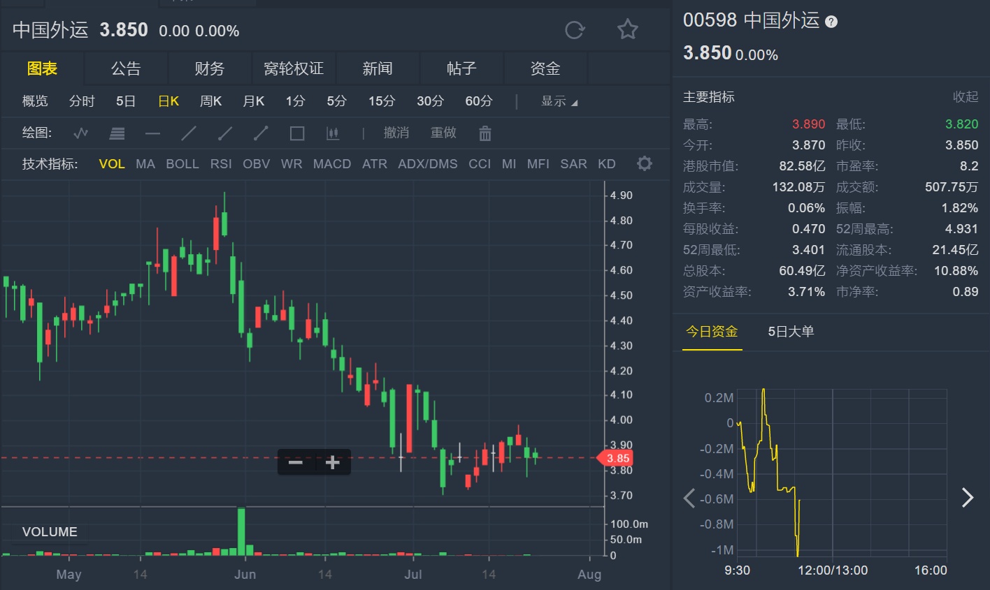 建银预计中国外运将在2018至2020财年实现13%的盈利年复合增长率。该行予目标价4.8元,基于9.5倍预测市盈率,较其历史平均水平折让10%,预计其定下目标价可达,因为全球同业市盈率为21倍及盈利年复合增长率仅为7%。该行认为中外运股价催化剂为稳健的盈利增长,以及其控股的中外运空运的整合交易批准的协同效应。预测中外运2018及2019年纯利分别为25.9亿元人民币及29.39亿元人民币。