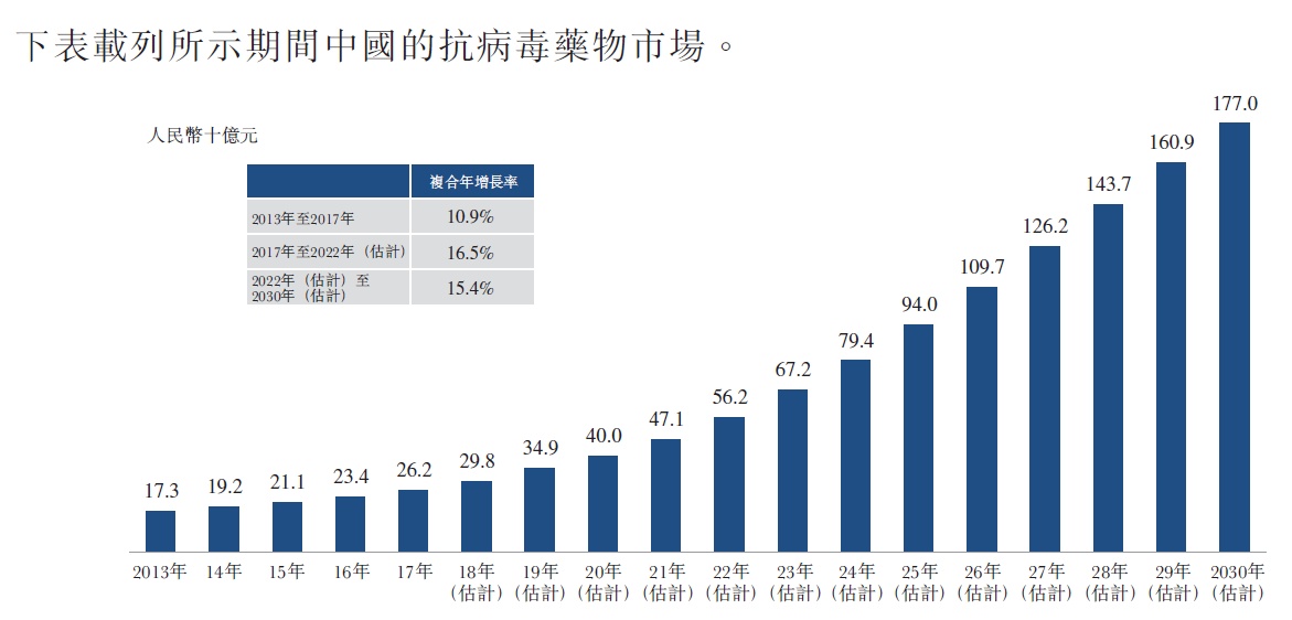 4、招股书披露:乙型肝炎、丙型肝炎及艾滋病为所有病毒性疾病中的主要疾病,按销售额计合共占2017年抗病毒药物市场的约80%,市场需求强烈。中国丙型肝炎药物市场于2028年将达到约人民币470亿元,占中国整体抗病毒药物市场约33%的份额。目前除了丙肝可以治愈外,乙肝和艾滋病尚无药品可以根治,可以预防和暂时控制。8.5分