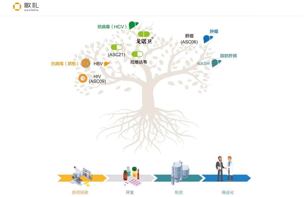 歌礼制药有限公司是一个一体化抗病毒平台,专注于抗HCV、HIV及HBV同类最佳创新药物的开发及商业化。在具备深厚专业知识及优秀过往成就的管理团队的带领下,歌礼制药已发展成为一体化的抗病毒平台,涵盖了从新药探索和开发直到生产和商业化的完整价值链。