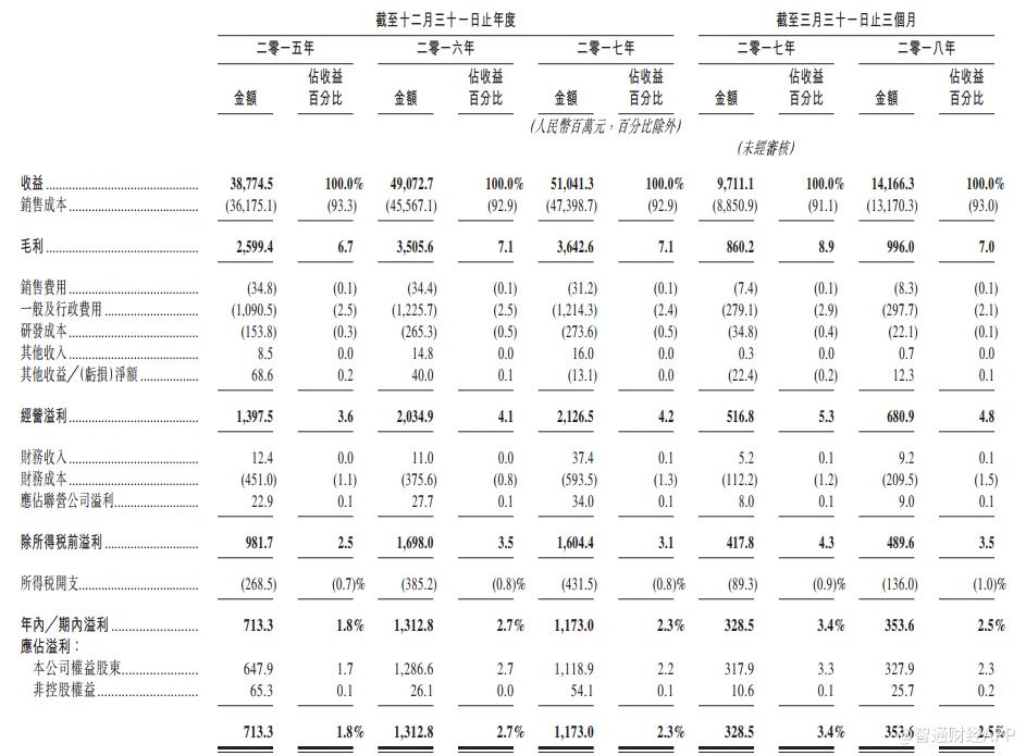 业绩方面,2015年、2016年、2017年,及截至2017年、2018年3月31日止3个月,山东黄金矿业收入分别为人民币387.75亿、490.73亿、510.41亿、97.11亿、141.66亿人民币。毛利分别为25.99亿、35.06亿、36.25亿、8.6亿、9.96亿人民币。