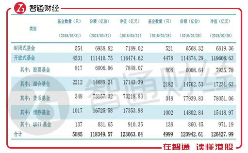 不过,公募基金投资品种主要局限于资本市场,根据证券投资基金协会官网数据,截至2018年3月份,公募发行的基金产品合计有5085只,其中封闭式基金554只,开放式基金4531只,开放式基金中,主要为股票型基金、混合基金、货币基金、债券基金以及QDII基金,合计净值为12.37万亿元。