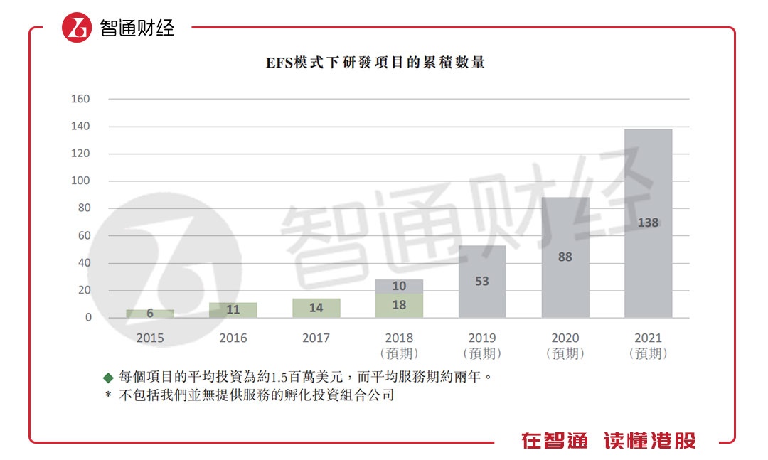 尝到高回报率甜头的维亚,已经把EFS模式视为投资模式,并有意扩大投资组合。截止目前,EFS模式下研发项目的累计数目为18个,该公司预计今年还将增加10个,2019-2021年分别增加25、35、50个早期研发项目。