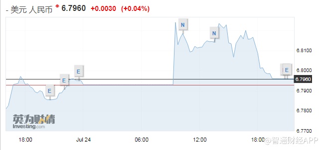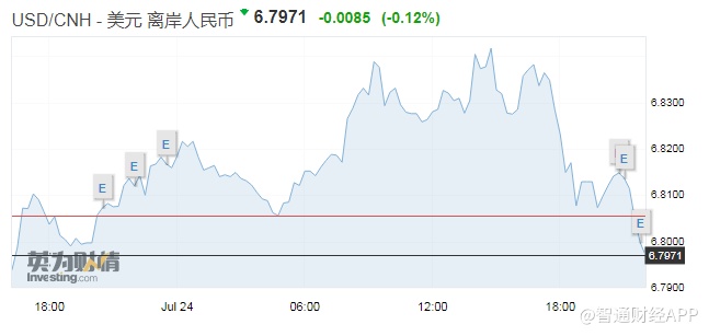 智通财经APP获悉,7月24日晚间,离岸人民币收复6.80关口。