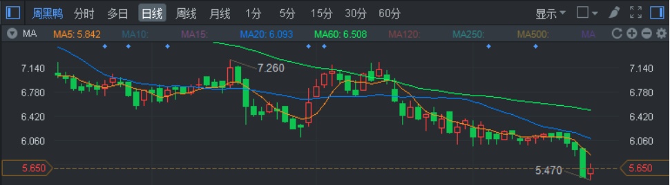 由此看来,周黑鸭的业绩不仅在过去没有给投资者带来意外之喜,未来短期内的盈利能力也充满疑虑,在市场行情低迷之时,投资者选择暂时离开并非不可理解。