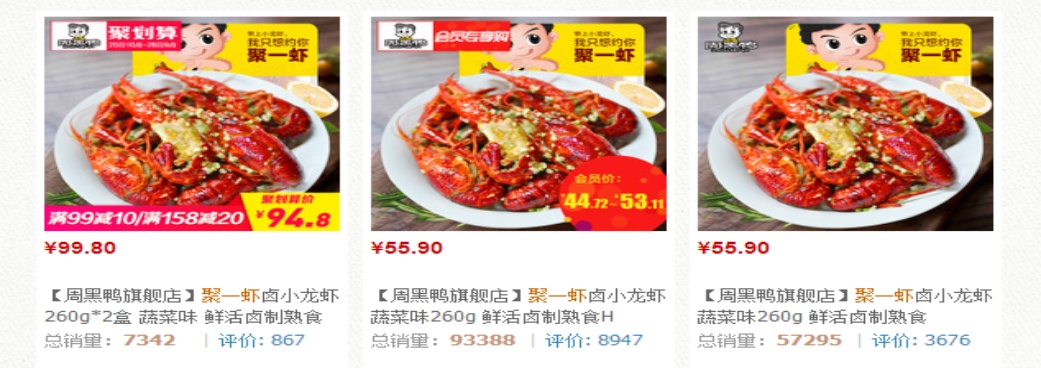 周黑鸭小龙虾产品在2018年初重新上架之后,销售再度火热,公司两款售价55.9元的小龙小产品在天猫官方旗舰店的累计销量达到16万件,单月销量合计超过6万件。