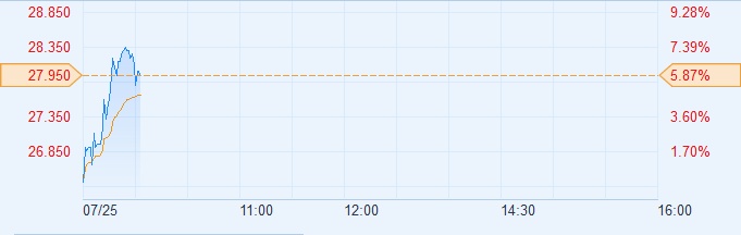 智通财经APP获悉,集成电路板块今日大幅上涨,华虹半导体(01347)领涨板块,截至10:01,涨5.68%,报27.9港元,成交额6931万港元。
