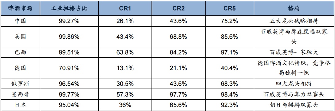 纵观全球的啤酒市场,与中国规模相近的市场多数都形成了双寡头竞争格局。
